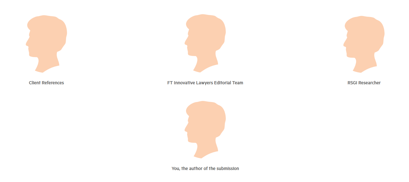 All submissions are assessed by RSGI, which uses a process of interviews with clients, submitting lawyers and experts. The submissions are then scored against a bespoke ranking methodology, devised for the FT, to assess innovation in law firms.